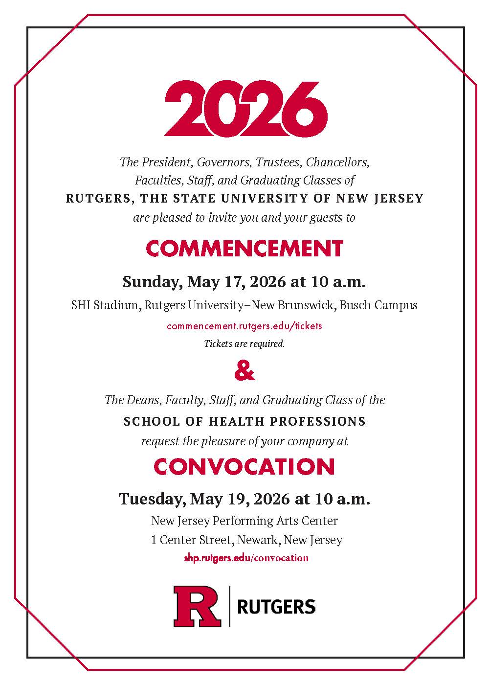 *Please note that SHP Convocation and Rutgers Commencement are two separate events and require registration for both.