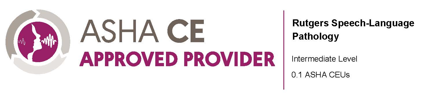 Rutgers University’s MSSLP program is an approved ASHA CE provider. Please stay tuned for courses offered for ASHA CEUs from our team